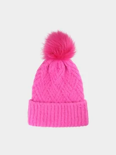 Czapka zimowa z pomponem dziewczęca idealnie sprawdzi się nie tylko jako zimowe akcesorium, ale także jako element sportowych stylizacji podczas aktywności na świeżym powietrzu w chłodne dni. Posiada klasyczny fason typu beanie. Czapka na zimę jest wykonana z materiału syntetycznego, który zapewnia trwałość i jest łatwy w pielęgnacji. Czapka dla dziewczynki nie jest ocieplana. Na czubku znajduje się pompon ze sztucznego futerka.