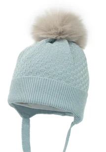 Czapka bambusowa niemowlęca na zimę LOLO z pomponem miętowy