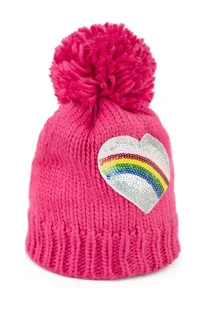 Czapka dziecięca z pomponem. Posiada ozdobną naszywkę z cekinów w kształcie serca. Materiał miękki, przyjemny dla skóry. Idealna dla wszystkich dziewczynek kochających różowe dodatki.