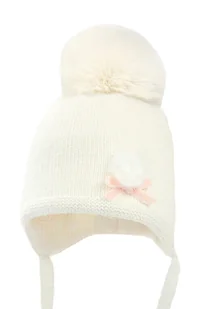 Dziewczęca czapka na zimę ALISENT z pomponem ekri