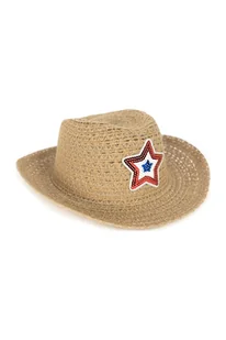 Kapelusz kowbojski dla chłopca lub dziewczynki, z naszywką w kształcie gwiazdki. Wyproduktowany z naturalnych materiałów. Zdobienia syntetyczne o trwałych kolorach. Świetnie sprawdza się na imprezach tematycznych, wyprawach do parków rozrywki, a także podczas plażowania oraz jako codzienny kapelusz na lato dla dziecka. Jest ażurowy, niezwykle lekki i bardzo wygodny. Posiada gumkę, którą można założyć pod szyję lub pod włosy, co zabezpiecza przed porwaniem przez morską bryzę.