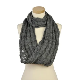 Piękny, ażurowy komin do noszenia na wiele sposobów. Ciepły, mięciutki i miły w dotyku jest bardzo praktycznym dodatkiem. Można nim otulić szyję, nosić na ramionach lub na głowie w formie eleganckiego kaptura. Idealny dodatek do codziennych stylizacji.