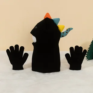 TEMU 2 szt. Zestaw dla Chłopców Dinozaur Onesie Czapka + Rękawiczki Dwuczęściowy Zestaw Czapka Onesie Czapka z Szalikiem Nakrycie Głowy Dzianina