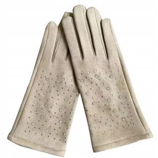beżowe damskie RĘKAWICZKI cyrkonie stylowe dodatki do ubrań na zimę jesień - Inny producent