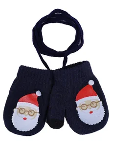 Rękawiczki chłopięce jednopalczaste ze sznurkiem dwuwarstwowe mikołaj granatowe dotykowe 16 cm YOCLUB - YoClub