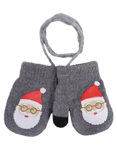 Rękawiczki chłopięce jednopalczaste ze sznurkiem dwuwarstwowe mikołaj szare dotykowe 16 cm YOCLUB - YoClub