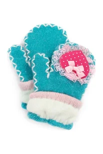 Dziecięce rękawiczki jednopalczaste z naszywką z serduszkiem obszytym koronką. Połączone sznurkiem, dzięki czemu Twoje dziecko nie zgubi ich podczas spaceru. Przeznaczone dla dzieci w wieku 1-3 lat.
