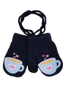 Rękawiczki dziewczęce jednopalczaste ze sznurkiem dwuwarstwowe filiżanka granatowe dotykowe 12 cm YOCLUB - YoClub