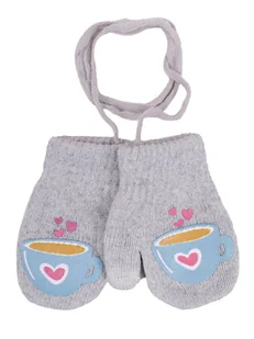Rękawiczki dziewczęce jednopalczaste ze sznurkiem dwuwarstwowe filiżanka szare dotykowe 14 cm YOCLUB - YoClub
