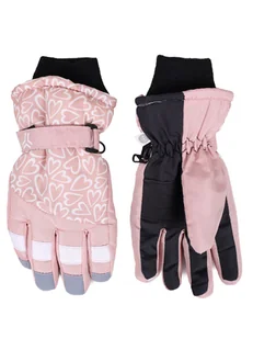 Rękawiczki narciarskie dziewczęce dziecięce pięciopalczaste różowe w serca 16 cm YOCLUB - YoClub