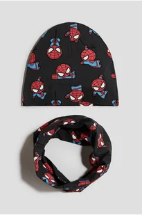 Czapka i szalik-komin wykonane z miękkiego dwuwarstwowego dżerseju w nadruki.