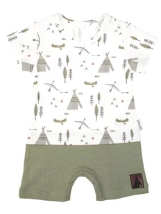 Wyprodukowano w Polsce Doskonały w ciepłe dni, rampers dla chłopca. Góra produktu wykonana jest z białego koloru w indiański wzór, a dół rampersa z zielonej ...