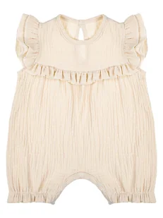 Wyprodukowano w Polsce Muślinowy rampers dla dziewczynki w beżowym kolorze. Uszyty z przewiewnej tkaniny. Jego skład to 100% bawełny. Fason zdobią motylki w ...