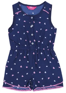 Granatowy kombinezon w motylki, na ramiączkach. Z przodu zapięcie na guziki. W pasie znajduje się gumka. Wykonany z miękkiego, miłego w dotyku materiału. Wiek / Wzrost :