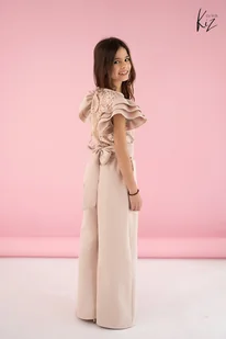 Elegancki kombinezon dziewczęcy – idealny na wyjątkowe okazje! Szukasz stroju, który zachwyci swoim stylem i elegancją? Ten biały kombinezon dziewczęcy to doskonały wybór na uroczystości, sesje zdjęciowe czy ważne rodzinne wydarzenia. Dlaczego warto go wybrać? Luksusowy design – modne, szerokie nogawki dodają klasy i swobody. Romantyczne detale – falbaniaste rękawy oraz subtelne koronkowe plecy nadają wyjątkowego uroku. Idealne dopasowanie – pasek w talii podkreśla sylwetkę, a wiązanie na plecach dodaje elegancji. Wysokiej jakości materiał – komfort noszenia i przewiewność, idealne nawet na ciepłe dni.