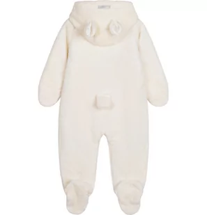 Ciepły i wygodny wybórKombinezon przejściowy z kapturem dla niemowlaka z kolekcji Mów mi misiu. Starannie wykonany z mięciutkiej dzianiny imitującej futerko. Zapinany na suwak, z rękawami wykończonymi ściągaczem i z naszytymi odwijanymi rękawiczkami-łapkami. Nogawki ze stopami, żeby żaden maluch nie zmarzł. W środku miękka, bawełniana podszewka w deseń.