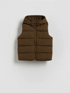Reserved - Pikowana kamizelka z kapturem - brązowy