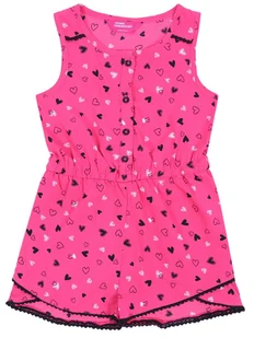 Różowy kombinezon w serduszka, na ramiączkach. Z przodu zapięcie na guziki. W pasie znajduje się gumka. Wykonany z miękkiego, miłego w dotyku materiału. Wiek...