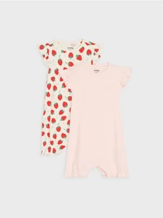 Sinsay - Bawełniane kombinezony z falbankami i motywem truskawek 2 pack - kremowy