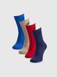 Chłopięce skarpetki - CECHY: zakres rozmiarów: 32-40 – dopasowanie do szerokiego zakresu rozmiarów stóp krój do połowy łydki – optymalna długość zapewniająca komfort i ochronę wykonane w 66% z bawełny – miękkie, trwałe i przyjemne w dotyku dodatek 30% poliamidu – zwiększa odporność na rozciąganie i zagniecenia jednolita kolorystyka – pasuje do wielu stylizacji i ułatwia dobór do garderoby logo 4F na mankiecie – subtelny akcent podkreślający markę 4 pary w zestawie – praktyczne i ekonomiczne rozwiązanie elastyczny materiał – idealnie przylega do stopy, zapewniając komfort noszenia Skarpety chłopięce są idealnym wyborem do codziennych aktywności. Dzięki zastosowaniu miękkich i elastycznych włókien dopasowują się do kształtu stopy, zapewniając wygodę. Mają długość do połowy łydki.