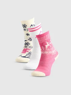 Codzienna wygoda w świątecznym klimacie ten zestaw skarpetek dla dziewczyny to upominek, który łączy funkcjonalność z miękkim, zimowym komfortem. Krój do połowy łydki sprawdza się zarówno w domu, jak i podczas zimowych spacerów. Bawełniana dzianina zapewnia przyjemną miękkość, a mankiety ze ściągaczem stabilnie trzymają skarpetki na nodze przez cały dzień. To prezent, który wprowadza delikatny, świąteczny nastrój i będzie towarzyszył na co dzień przez całą zimę.