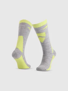 Specjalne, prążkowane ściągacze na stopie, wokół kostki i śródstopia, stabilizują skarpetę, zapobiegając jej zsuwaniu się w trakcie intensywnego użytkowania. Dzięki temu każdy ruch – od pierwszych zjazdów po dynamiczne skręty – odbywa się z pełnym wsparciem. To produkt stworzony specjalnie do narciarstwa, łączący funkcjonalność z wygodą niezbędną podczas zimowych aktywności.