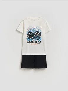 Reserved - Bawełniana piżama z nadrukiem - złamana biel