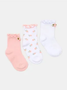 Sinsay - Krókie skarpetki z falbanką i aplikacją 3D w kształcie rózyczek 3 pack - różowy