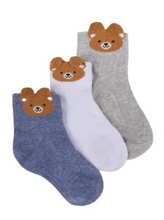 Skarpety chłopięce bawełniane krótkie z misiem 3-pak Dlaczego je pokochasz: Przyjemna w dotyku, wysokogatunkowa bawełna Miękkie i przyjemne w dotyku ide...