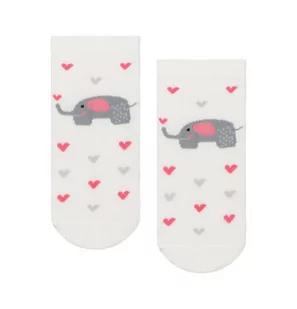 Skarpetki dziecięce, ze słoniem, w serca, kremowe