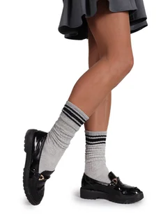 Skarpety dziewczęce długie bawełniane marszczone szare Dlaczego je pokochasz: Przyjemna w dotyku, wysokogatunkowa bawełna Modny, marszczony fason Elastycz...