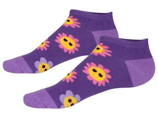 Piłka nożna, Awokado/Ananas, Banany, Zebra/Lew, Wiśnie/Kropki, Cytryny: 2 pary Kwiaty, Dinozaury/Palmy, Rekiny, Paski/Jednorożec/Tęcza, Wieloryby/Deska surfingowa, Buźka cytryny: 3 pary Materiał: Awokado/Ananas 36-40: 72% bawełna, 26% poliamid, 2% elastan 41-46: