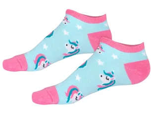 Piłka nożna, Awokado/Ananas, Banany, Zebra/Lew, Wiśnie/Kropki, Cytryny: 2 pary Kwiaty, Dinozaury/Palmy, Rekiny, Paski/Jednorożec/Tęcza, Wieloryby/Deska surfingowa, Buźka cytryny: 3 pary Materiał: Awokado/Ananas 36-40: 72% bawełna, 26% poliamid, 2% elastan 41-46: