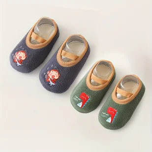 TEMU 2 pary antypoślizgowych skarpetek dla maluchów - z uroczymi zwierzątkami z kreskówek i motywami pojazdów, miękkie i , łatwe do zakładania i