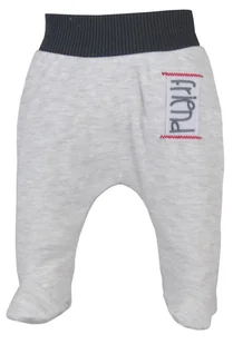Półśpiochy niemowlęce wykonane z 100% bawełny w kolorze szarym. Szeroki ściągacz w pasie i delikatny materiał zapewniają dziecku wygodę i swobodę ruchów. Posiadają wszyty ozdobny napis. Doskonale uzupełniają się z pozostałymi produktami kolekcji. Produkt w 100% wyprodukowany w Polsce z certyfikowanych materiałów.