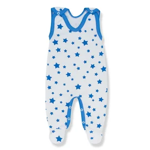 ŚPIOSZKI Z KOLEKCJI NIEBIESKIE GWIAZDKI 6868 Kompletując wyprawkę warto pamiętać o bawełnianych śpioszkach niemowlęcych. Chyba nie ma drugiego, tak bardzo uniwersalnego w użyciu ubranka. Bawełniane śpioszki są idealne do spania, ale sprawdzają się również w zabawie, podczas raczkowania, a nawet przy nauce chodzenia. Śpioszki zapinają się napkami, trzymając ubranko niczym szelki na ramionkach maleństwa. Dzięki temu rozwiązaniu możesz bezproblemowo zdjąć, założyć ubranko, albo szybko przebrać pieluszkę, ponieważ w kroku również umieściliśmy szerokie zapięcie.