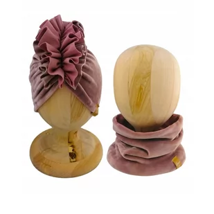 Zestaw Turban + Komin dla dzieci z VELURU kolor pudrowy róż
