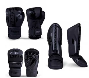 Zestaw Do MMA Ground Game Stripe Black Rękawice Bokserskie Sparingowe Ochraniacze Piszczeli