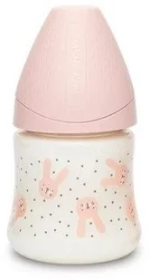 Suavinex Butelka Hygge okrągły wolny przepływ Króliki różowe 150ml