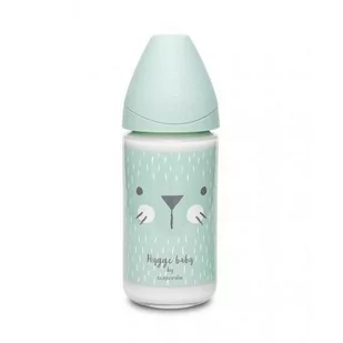 Suavinex Butelka szklana 240ml smoczek okrągły silikonowy 3 przepływowy Kotek Miętowy Hygge Baby
