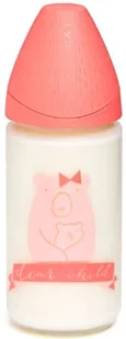 Suavinex Butelka szklana trójprzepływ miś różowy 240ml