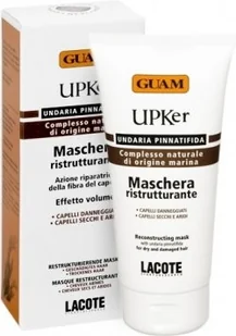 GUAM UPKer MASCHERA CON ATTIVO RISTRUTTURANTE TO PRODUKT: do odbudowy włókien włosa zwiększający objętość i wspierajacy głębokie nawilżanie wzmacniając naturalny błysk dla włosów zniszczonych dla włosów przesuszonych i łamliwych Maska o intensywnym działaniu ochronnym oraz restrukturyzującym włosy suche, zniszczone i pozbawione blasku. Dzięki zawartości kompleksu algowego, masła shea, olejku organowego oraz innych substancji odżywczych, produkt sprawia, że włosy stają się miękkie i lśniące. Są optymalnie nawilżone, gładkie, pełne witalności. Łatwo się rozczesują i układają.