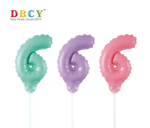 Balon Foliowy na Patyczku "Cyferka 6" Kolory w Opakowaniu: Turkusowy Rozmiar balonów - 11,5*18,5 cm (Wysokość z patyczkiem) Balony do pompowania POWIETRZEM N...