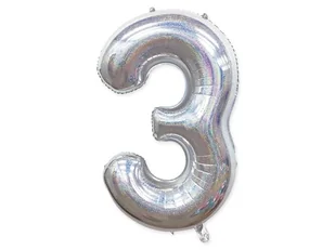 Balon foliowy "cyfra 3", holograficzna srebrna, 100 cm Balon foliowy "cyfra 3" o kolorze holograficznym srebrnym. Balon foliowy liczba jest wielkości aż ok. ...