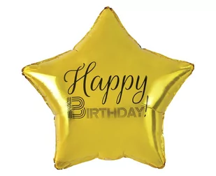Oferujemy wyjątkowy balon foliowy Happy Birthday w kształcie złotej gwiazdy, który doskonale sprawdzi się jako dekoracja na urodzinowej imprezie. Wykonany z wysokiej jakości materiałów, z efektownym, czarnym nadrukiem o wymiarach 19".