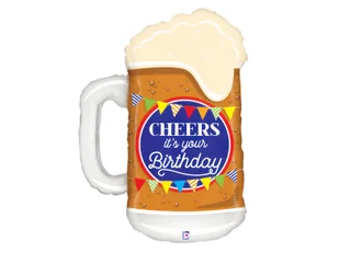 Balon foliowy w kształcie kufla z piwem z napisem "Cheers it's your Birthday".