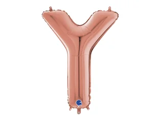Balon foliowy - literka Y w kolorze różowego złota, posiada specjalne uchwyty ułatwiające montaż.