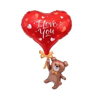 Balon foliowy Miś z Sercem napis I Love You 42X69 Szerokość: 42 cm Wysokość: 69 cm Balon samouszczelniający się Papierowe opakowanie i słomka Balon unosi się...