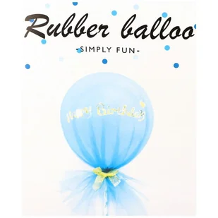 Balon 12" lateksowe z tiulem happy birthday kolor niebieski, w zestawie 2 balony, tiul,patyczek, kokardka napis happy birthday