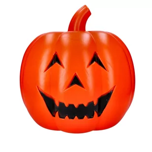 Dynia plastikowa ze światłem i dźwiękiem halloween Efektowna i tematyczna plastikowa dynia w pomarańczowym kolorze, idealna do halloweenowego wystroju. Osiąga około 32 cm wysokości, co czyni ją imponującym elementem dekoracyjnym. Świeci się i wydaje upiorne odgłosy, tworząc nastrojową atmosferę. Wykonana z wysokiej jakości tworzywa sztucznego, gwarantującego trwałość. Doskonała dekoracja na halloween, która doda magii i tajemnicy do tej wyjątkowej okazji.